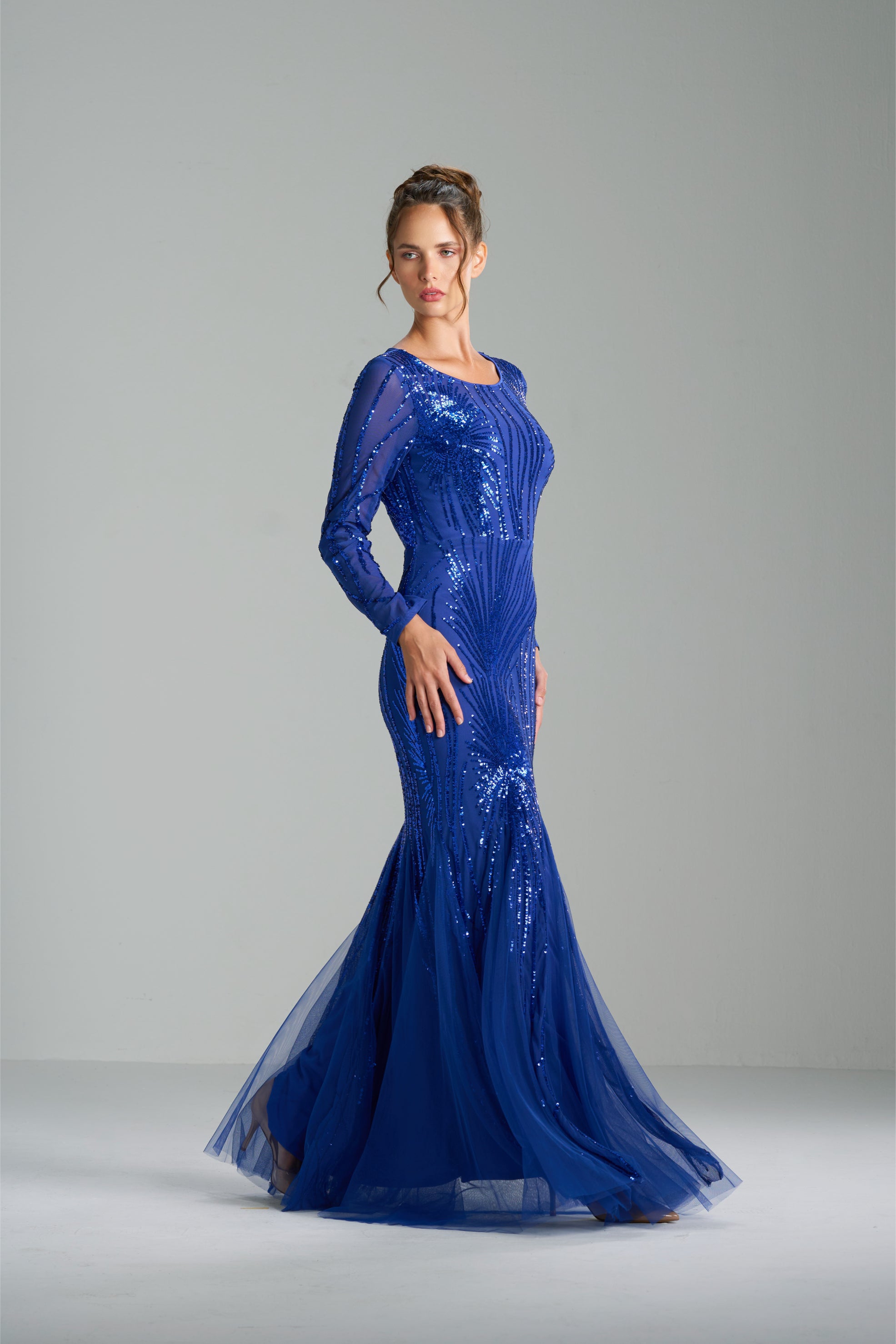 TATIANA - Royal Blue Sequin and Tulle Evening Gown